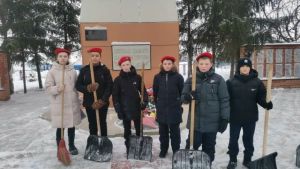 Юнармейцы Петропавловской школы очистили от снега памятник и помогли землякам