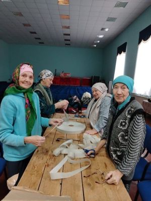 Акбүре авылының өлкән яшьтәге волонтерлары махсус операциядә катнашучыларга ярдәм итү өчен челтәрләр үрә